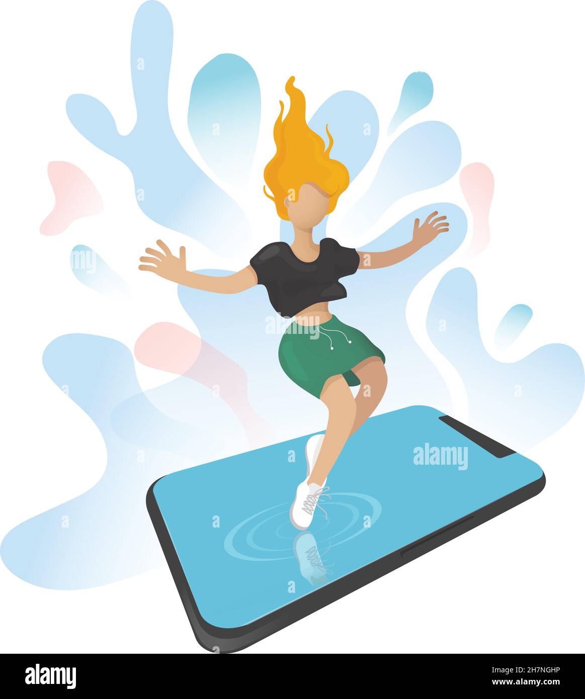 A Teenager Is Immersed In The Telephone World Dependence On The Phone Online Games Social Life On The Internet There Is No Real Life Only Virtual Stock Vector Image Art